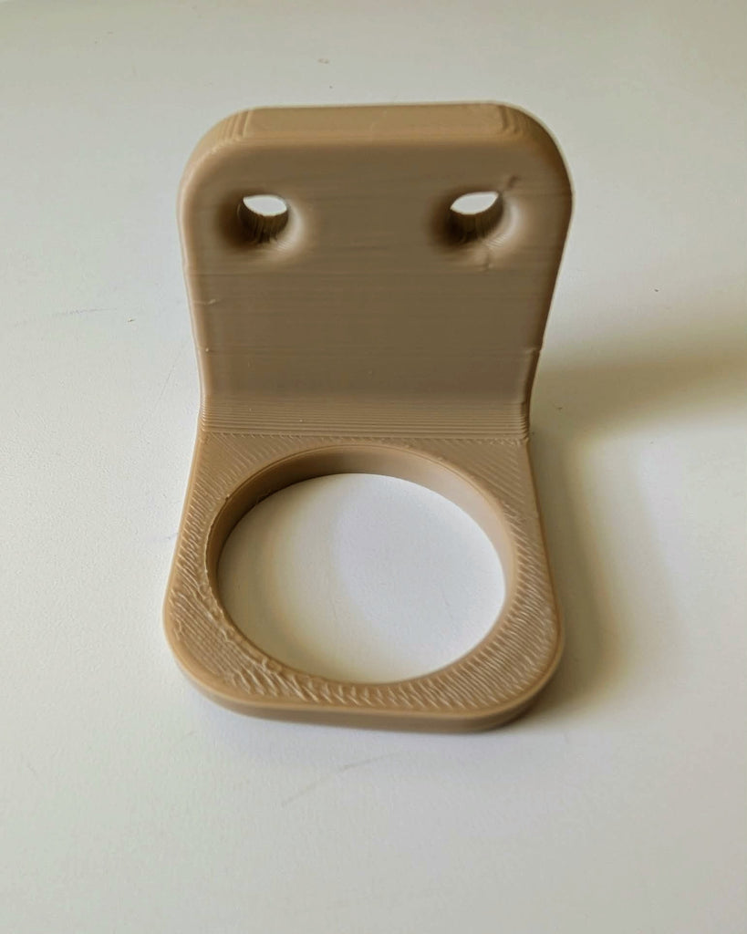 Holder for a 2 liter preform. Mount with 2 screws or use a zip tie through the slot,